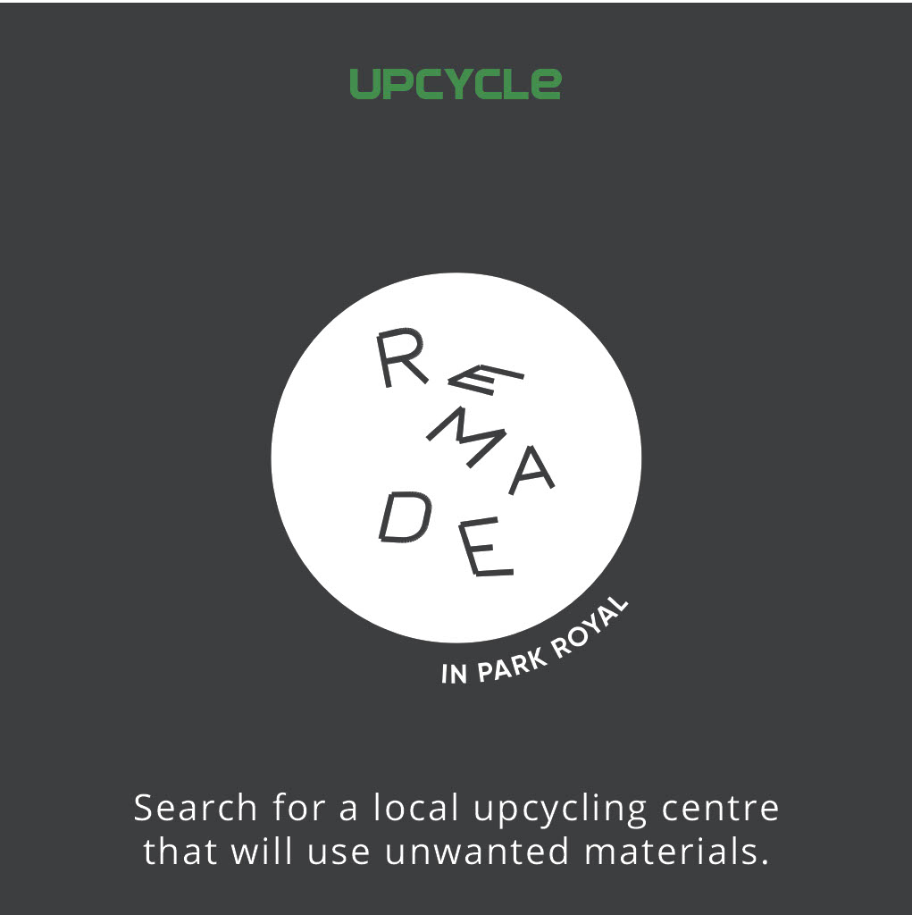 - See whether there is a local upcycling centre that will use unwanted items and materials to repurpose or upgrade them into practical solutions or artistic features. We have just teamed up with “Remade in Park Royal” to do just that! Stay tuned for more details!
