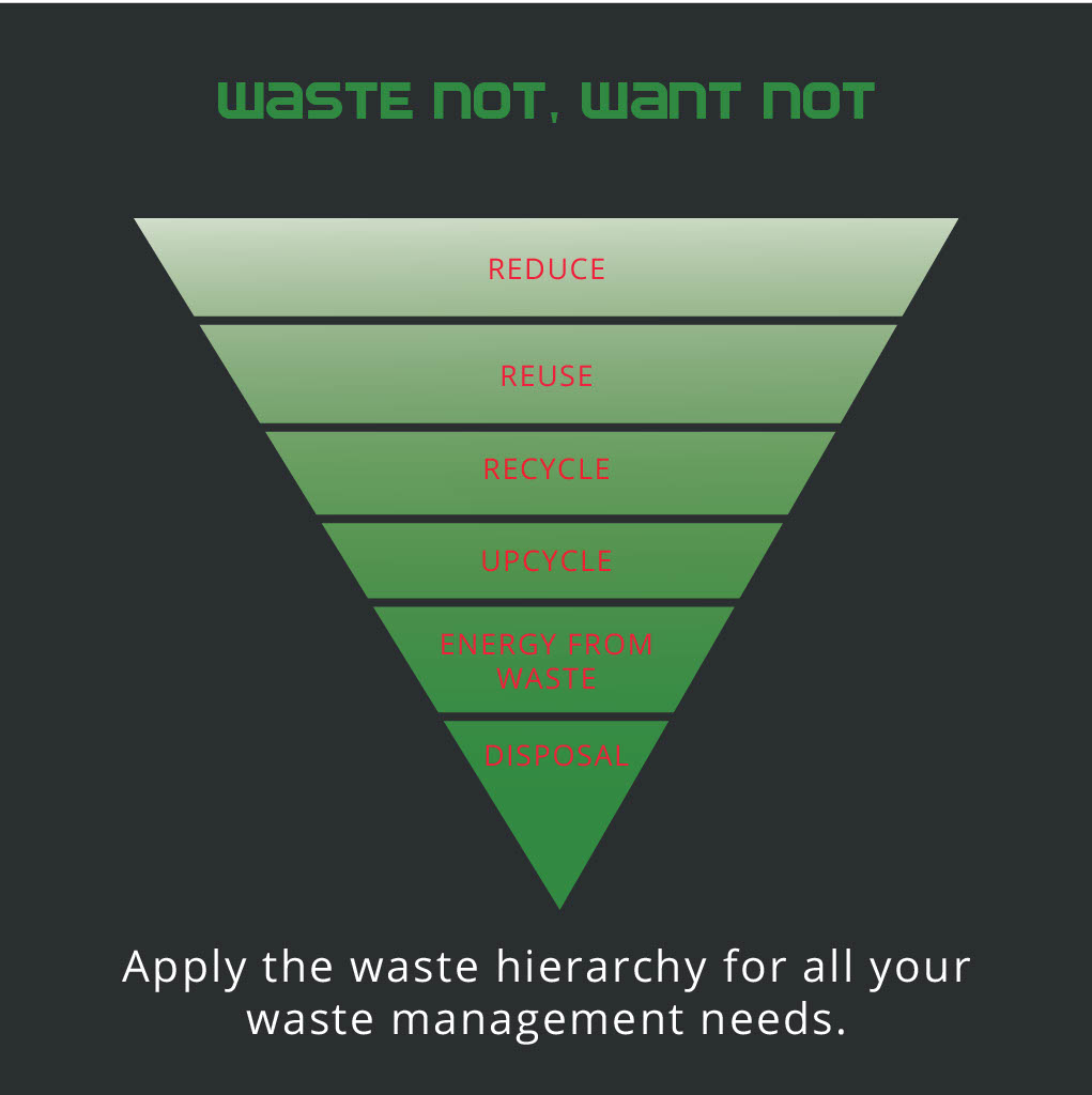 - Start at the top of the hierarchy for each form of waste and only go down to the next level if you can’t achieve the current level.