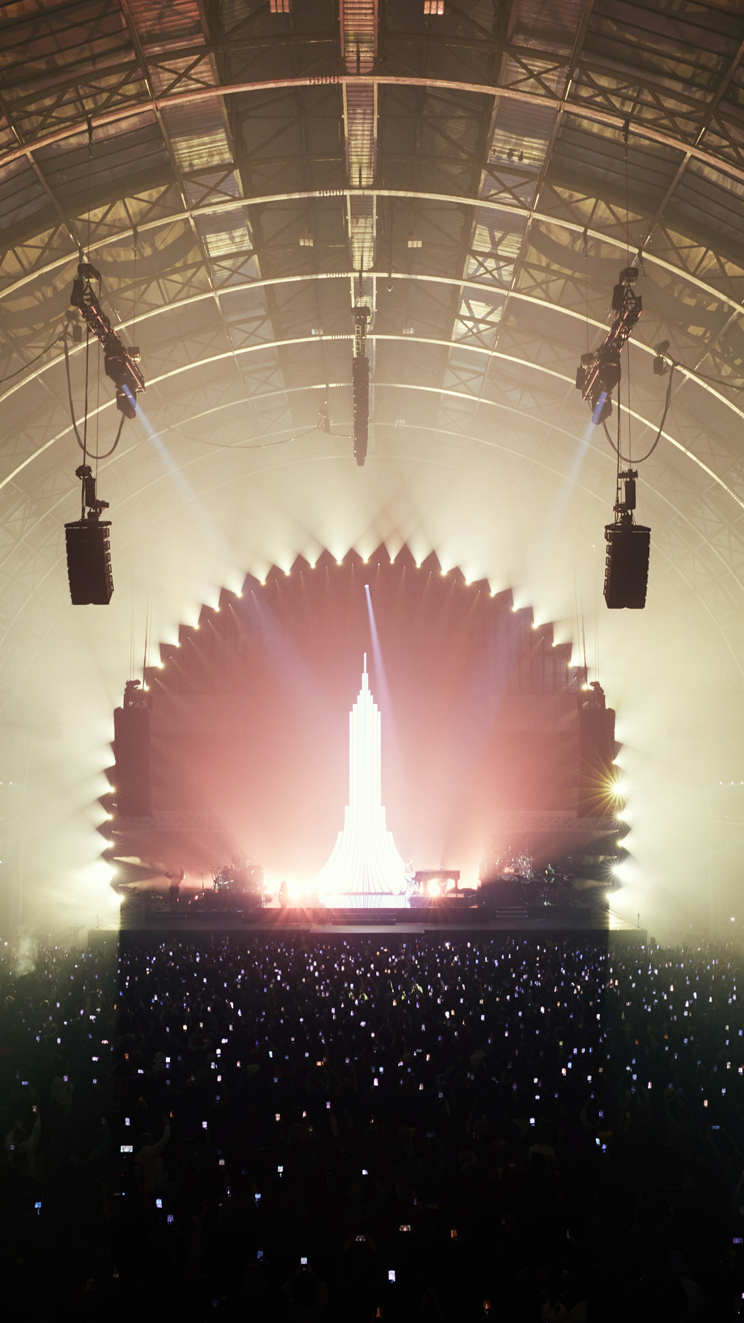 In addition, Neg Earth created a custom fabricated three-quarter circle to give the desired arch-look for Alicia Keys’ performance in the Moncler show.  The custom-made arch, built by the talented team at Neg Earth, was 26m in diameter, 18m in height, with 73 robe mega pointe adorning the curvature for an impressive runway-style stage which powerfully mirrored the venues architecture.