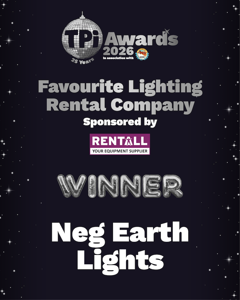 Neg Earth Lights are absolutely delighted to share that we have been awarded this year’s @tpimagazine Award for ‘Favourite Lighting Rental Company’ award!